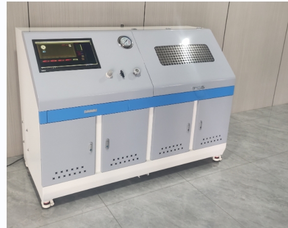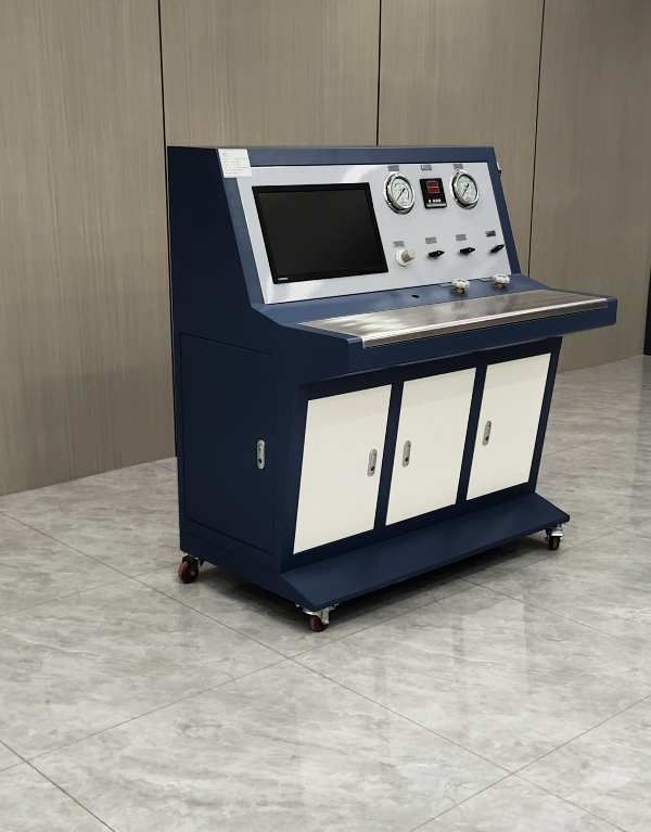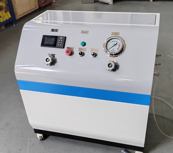 氣瓶?jī)?nèi)水壓試驗(yàn)機(jī)(鋼瓶?jī)?nèi)測(cè)法水壓試驗(yàn)機(jī))壓力范圍0~45mpa,介質(zhì)為靜止的清水,系統(tǒng)內(nèi)置高壓泵,實(shí)現(xiàn)對(duì)壓力高的高壓打壓,高壓保壓,高壓泄壓的測(cè)試效果,具體的測(cè)試步驟為:注水→打壓→保壓→泄壓→輸出數(shù)據(jù)的過程?!笔怯糜卺槍?duì)鋼瓶,氣瓶,非標(biāo)纏繞瓶,軍工纏繞瓶的內(nèi)水壓測(cè)試的范式,壓力范圍:0.1~45Mpa,介質(zhì)為靜置的液體,采用思明特增壓泵完成對(duì)壓力的增壓,計(jì)算機(jī)壓力控制系統(tǒng)控制壓力和控制增壓速率。