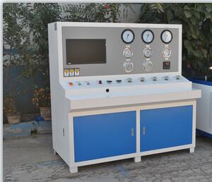 氣瓶內(nèi)水壓試驗機(jī)(鋼瓶內(nèi)測法水壓試驗機(jī))壓力范圍0~45mpa,介質(zhì)為靜止的清水,系統(tǒng)內(nèi)置高壓泵,實現(xiàn)對壓力高的高壓打壓,高壓保壓,高壓泄壓的測試效果,具體的測試步驟為:注水→打壓→保壓→泄壓→輸出數(shù)據(jù)的過程。”是用于針對鋼瓶,氣瓶,非標(biāo)纏繞瓶,軍工纏繞瓶的內(nèi)水壓測試的范式,壓力范圍:0.1~45Mpa,介質(zhì)為靜置的液體,采用思明特增壓泵完成對壓力的增壓,計算機(jī)壓力控制系統(tǒng)控制壓力和控制增壓速率。
